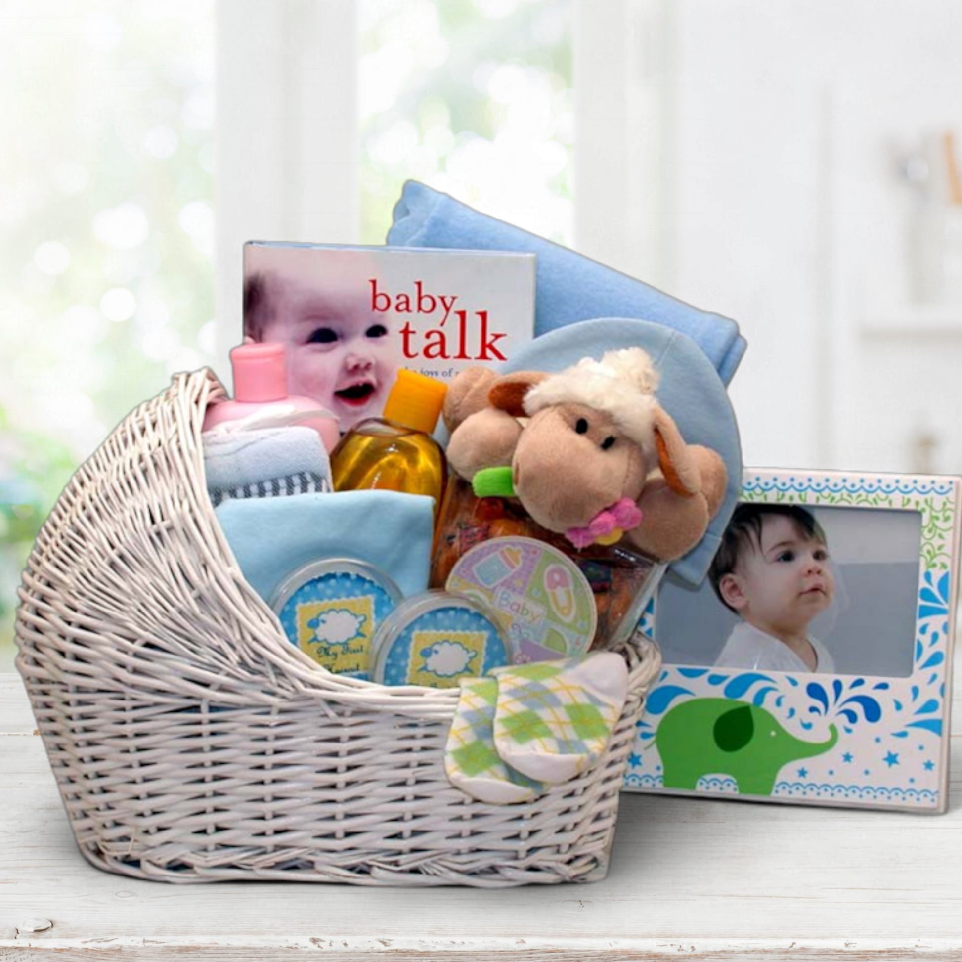 The Baby Bassinet Gift Basket includes: