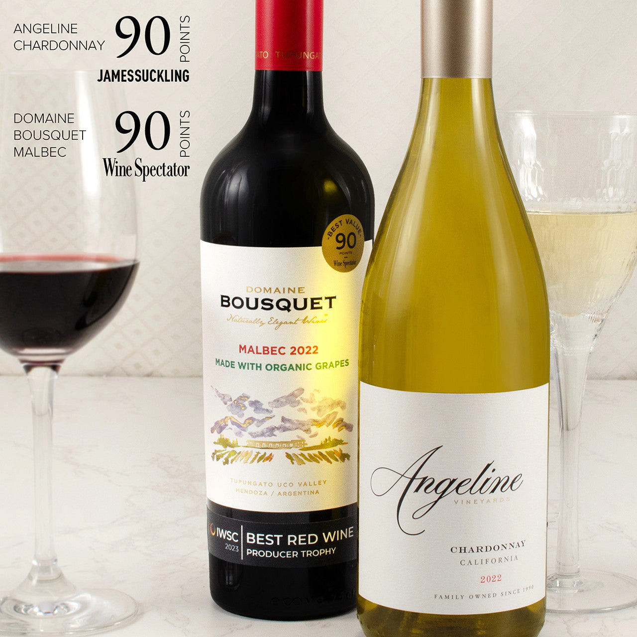 The Cabernet and Chardonnay Gourmet Wine Gift Tray includes: