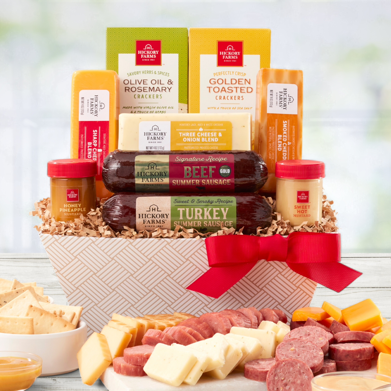 The Classic Favorites Gourmet Meat & Cheese Gift Basket includes: