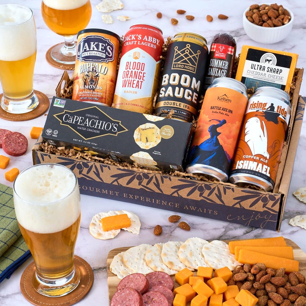 The Craft Beer Lovers Collection with Gourmet Snacks includes: