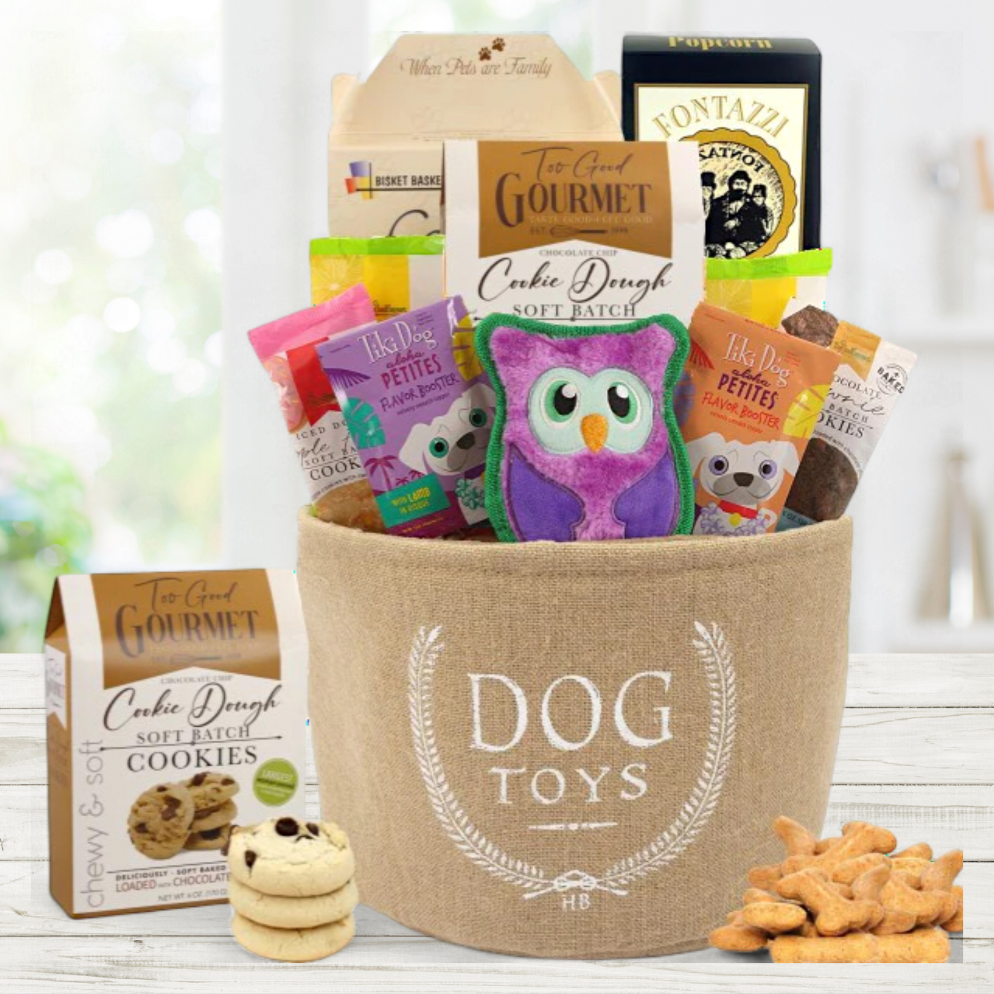 The Dog Toy Basket Gift for Dog and Owner includes: