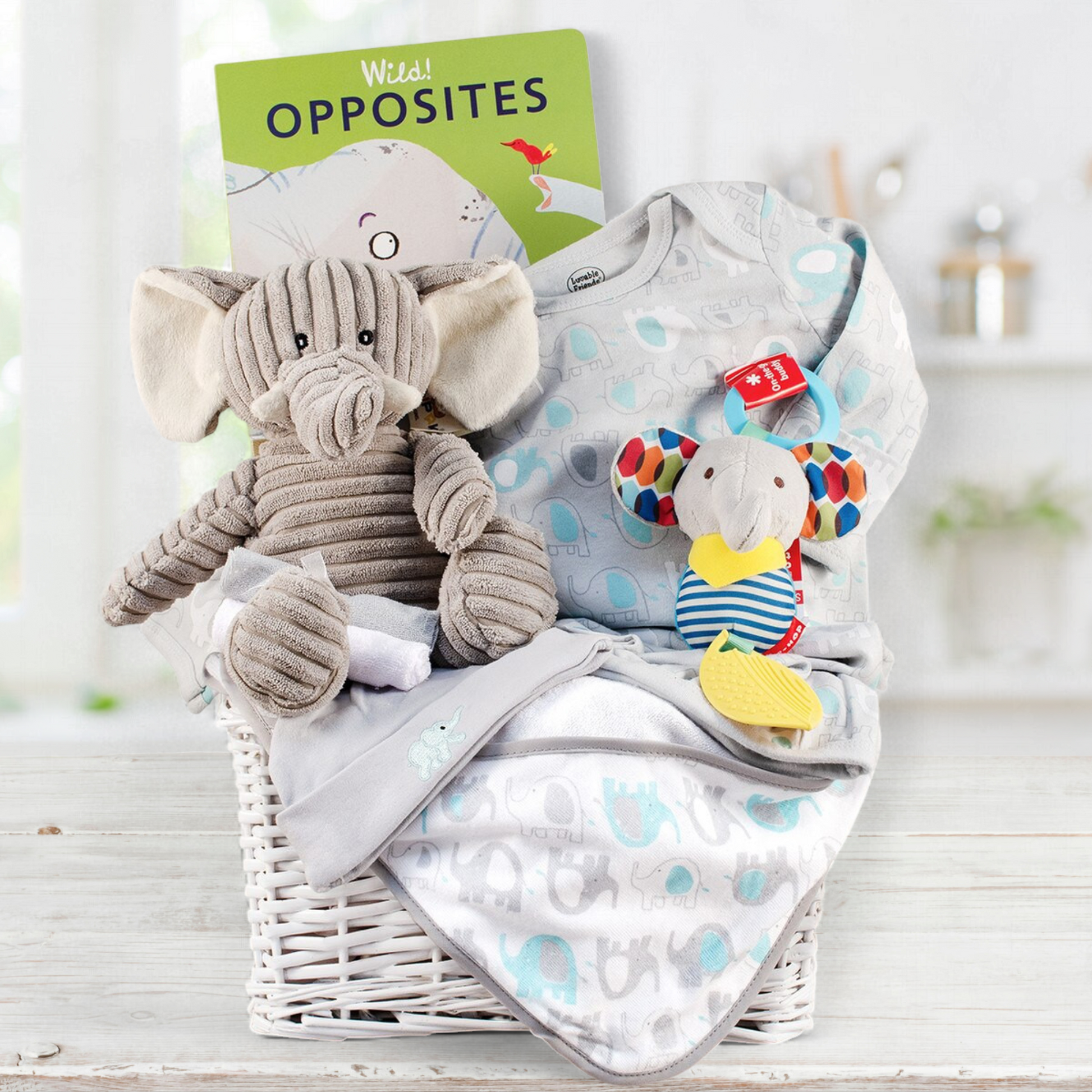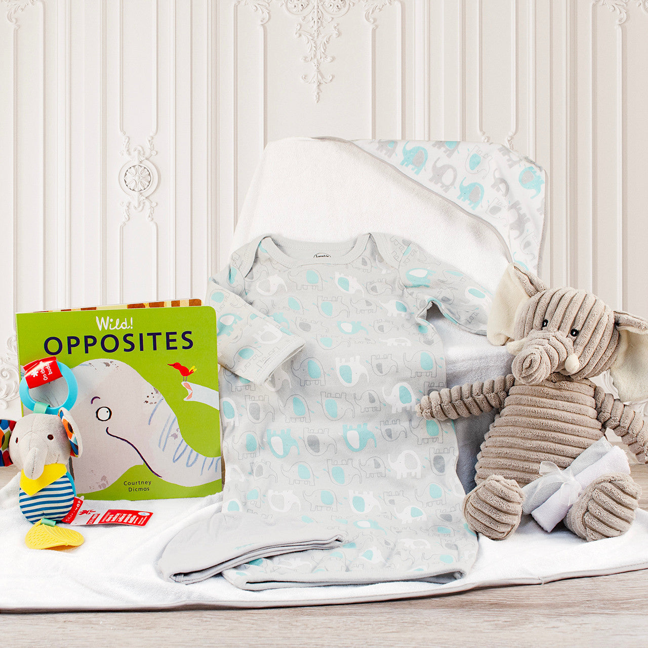 The Elephants for Baby: Baby Boy Gift Basket includes: