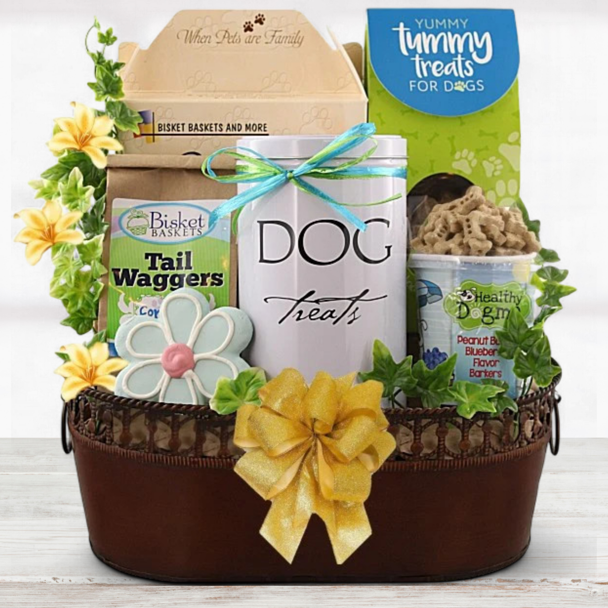 The Fifth Avenue Fido Dog Gift Basket includes: