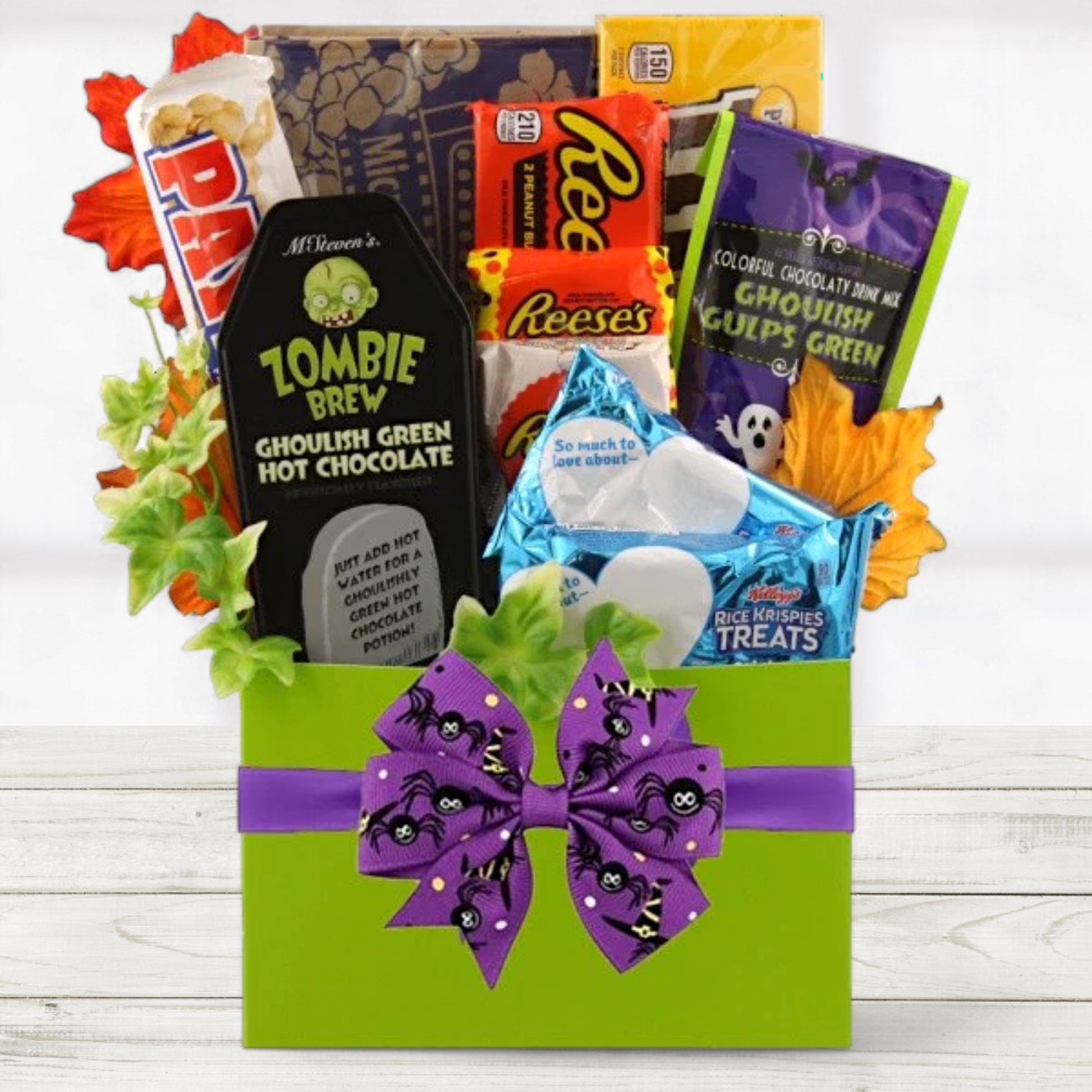 The Frightful Treats Halloween Candy Gift Basket includes: