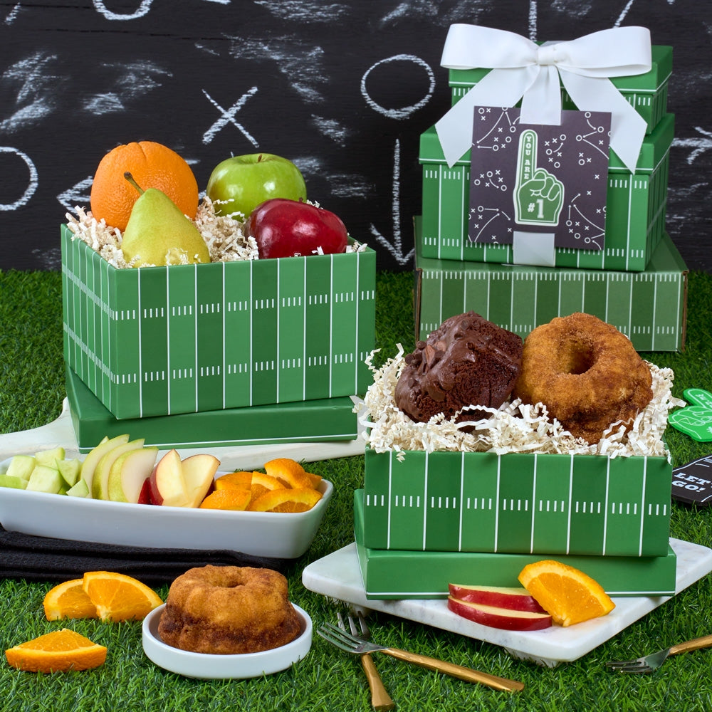 Score big with our Game On! Fruit and Bakery Gift Tower. Perfectly curated to elevate game day festivities, this gift is a winning combination of fresh juicy fruit and mini bundt cakes that steal the show. Imagine the thrill of them cheering on their team with these delightful treats. Whether it's a touchdown, hole-in-one, or a home run, this gift is a great way to savor the sweet moments of your favorite game day.