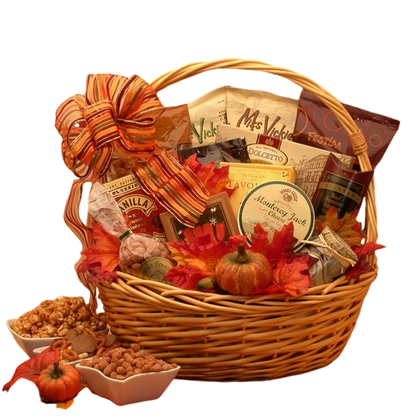 They'll find the comfort of delicious snacks and treats in our overflowing Giving Thanks Gourmet Fall Gift Basket. Adorned with blazing fall leaves, this beautiful gift basket makes a grand impression.