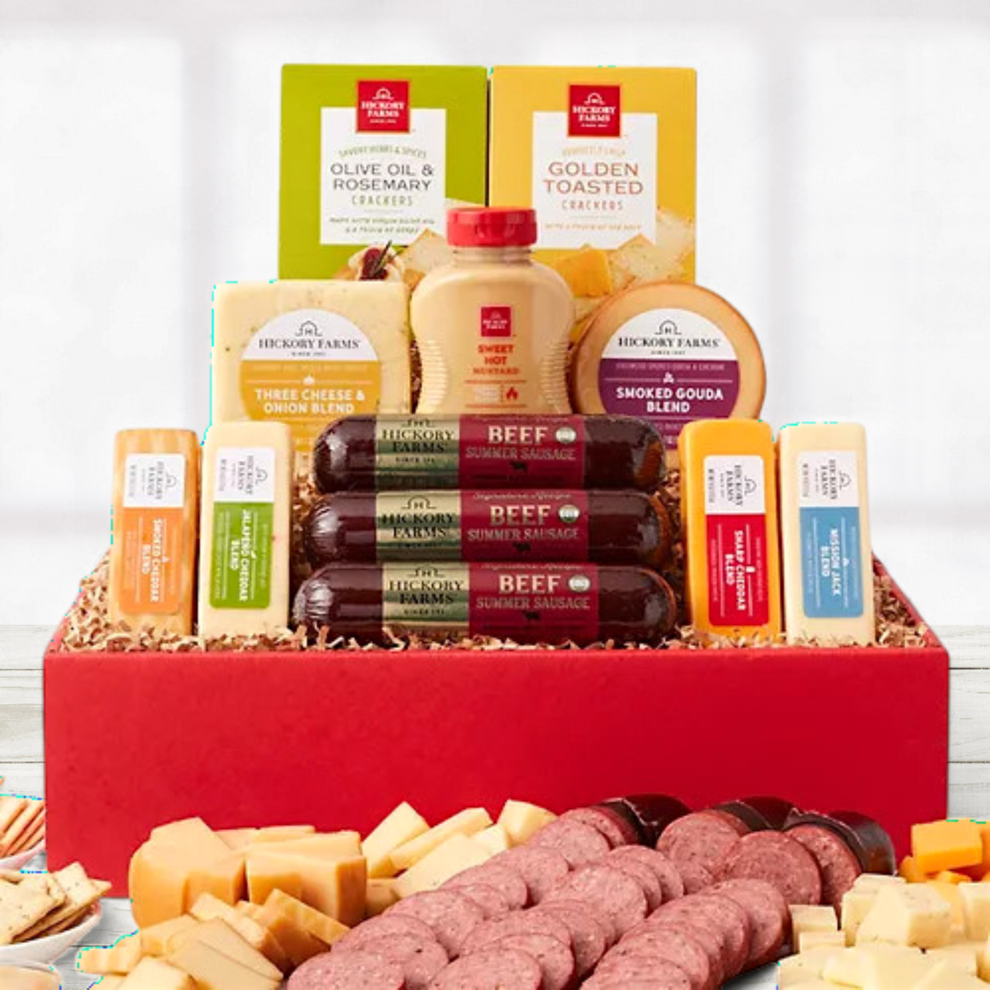 The Gourmet Favorites Meat & Cheese Gift includes: