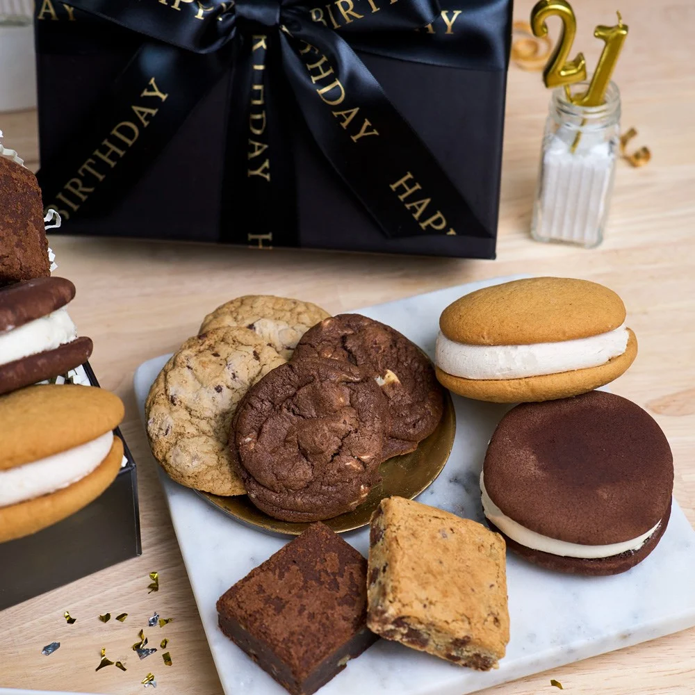 Our Happy Birthday Bakery Gift Box features an assortment of delectable baked treats! This gift is loaded with mouth-watering whoopie pies, cookies, and brownies that are sure to delight. Birthdays are precious moments, and giving the gift of rich and indulgent baked treats is the perfect way to celebrate!
