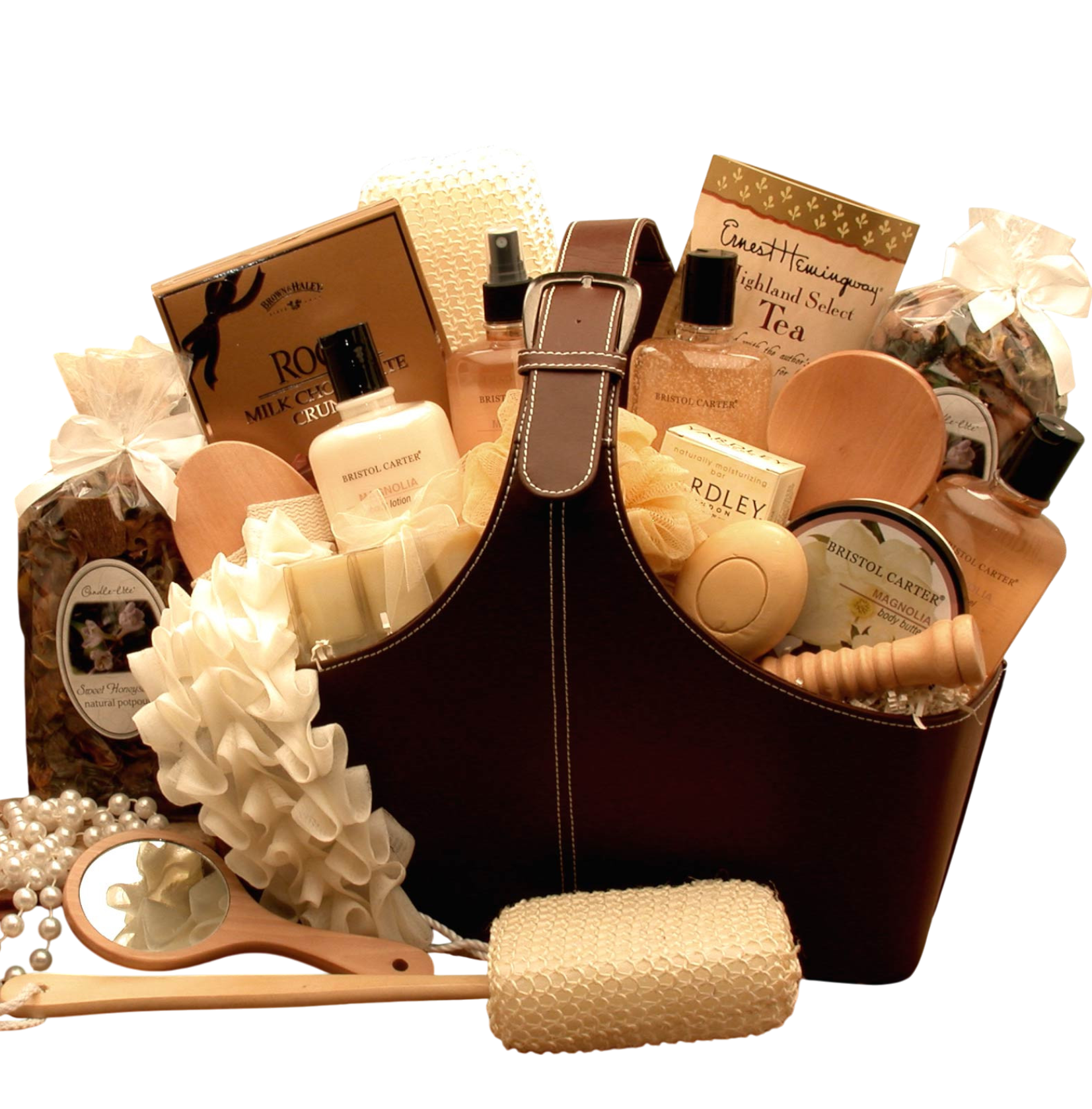 Indulge them in the ultimate self-care experience with our extravagant Vanilla Spa Body Care Collection. Infused with the soothing aroma of natural vanilla, this luxurious set includes a moisturizing body lotion, invigorating body spray, and more, all designed to refresh their body and mind. This luxurious spa day at home is completed with a chic faux black leather tote, pampering accessories, and delightful treats. This is one of our best selling spa baskets suitable for many occasions!