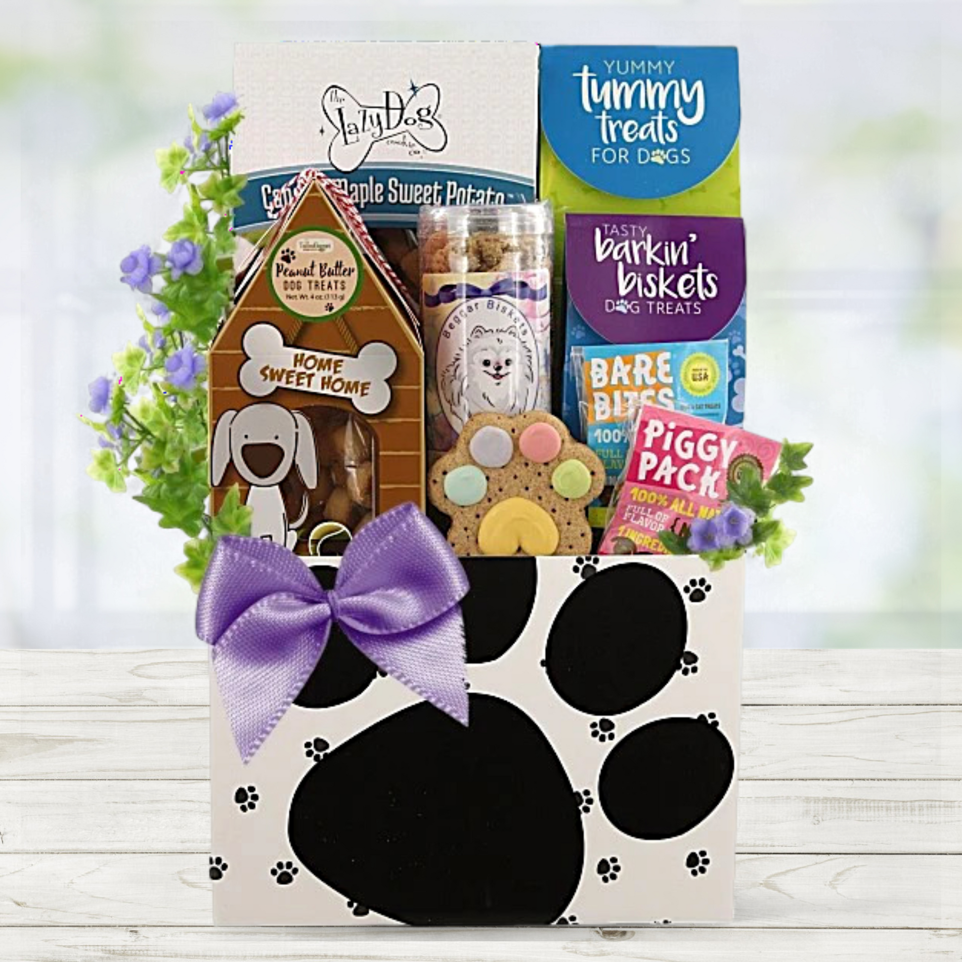 Treat your furry friend to our delightful dog gift basket, brimming with an assortment of delicious doggie biscuits. Perfect for rewarding good behavior, celebrating milestones, or simply showing love, this basket is an ideal gift for any occasion. Whether it's a get well soon gesture or a welcome home surprise, your pup will be thrilled with every tasty bite!