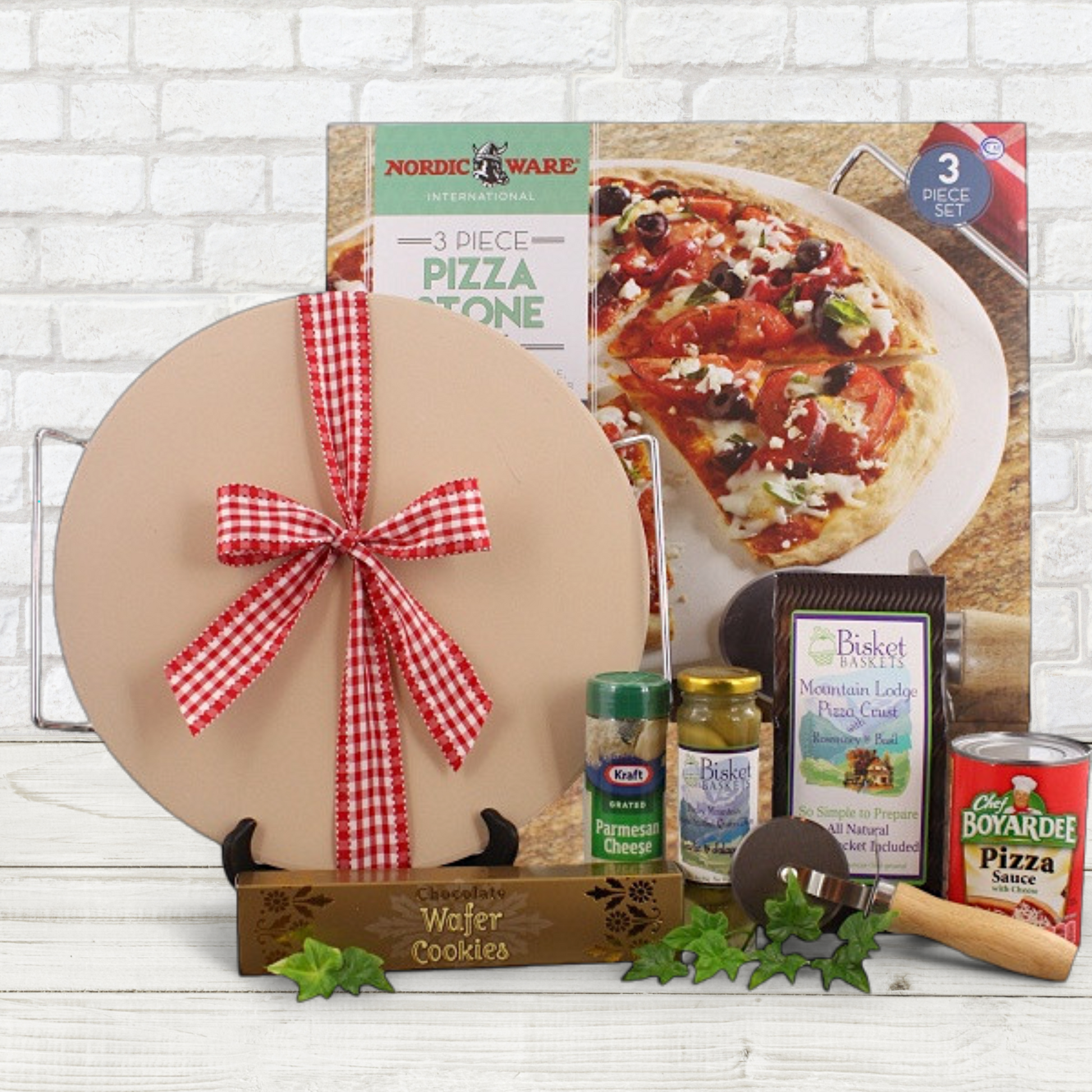 What a fun gift to send to families, college kids and more. Included with this gift they will receive an awesome pizza stone; complete with stand and slicer. Used for more than baking great pizzas, they can use it for reheating pizza and getting the perfect crust back or to warm up left over subs, making garlic bread and more. This great gift will last for years and years and the pizza stone is sure to be one of their favorite cooking tools!