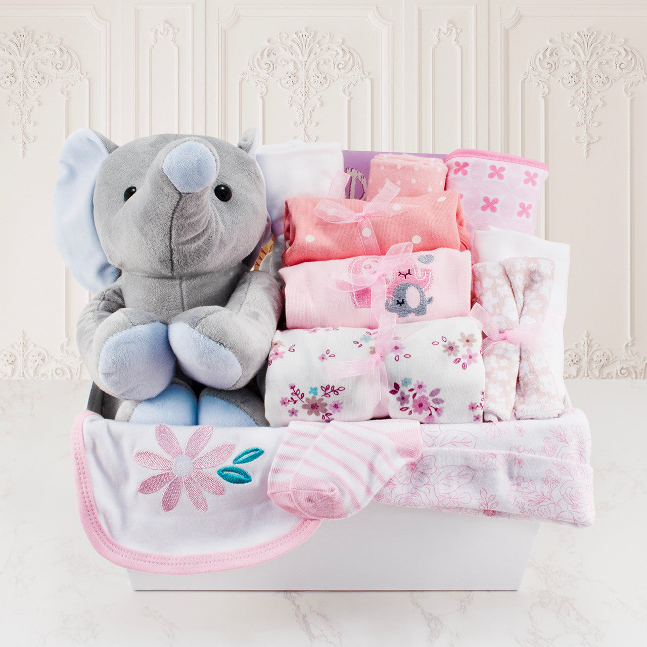 The Precious Beginnings Baby Girl Gift Basket includes: