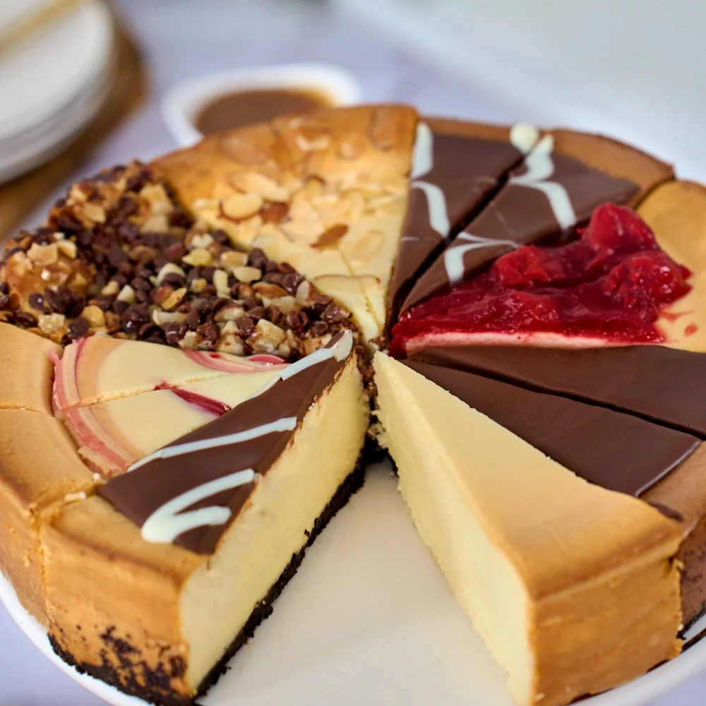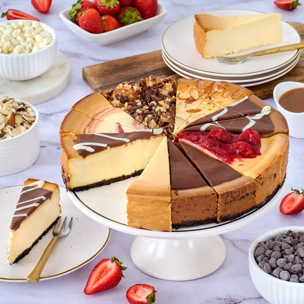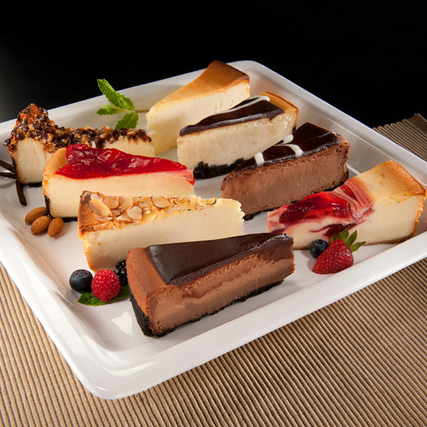 - Cheesecake Flavors - New York, Strawberry Swirl, Turtle, Amaretto, Cherry Almond, Triple Chocolate, Cookies & Crème, and Chocolate Raspberry