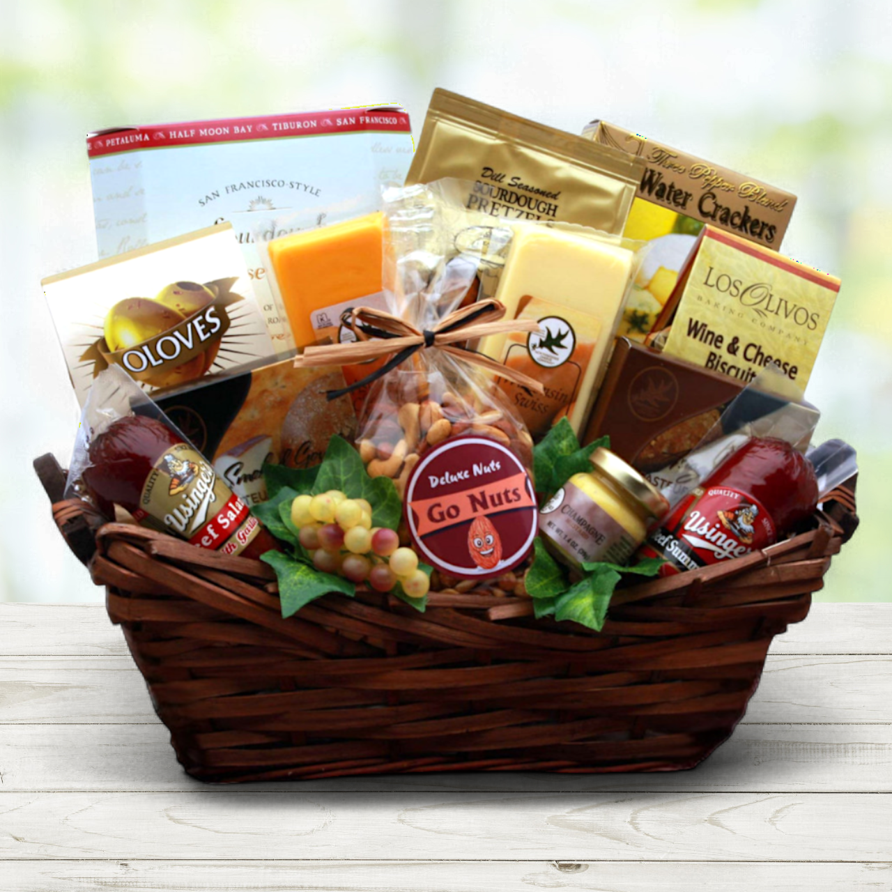 The Savory Snacker Meat & Cheese Gift Basket includes: