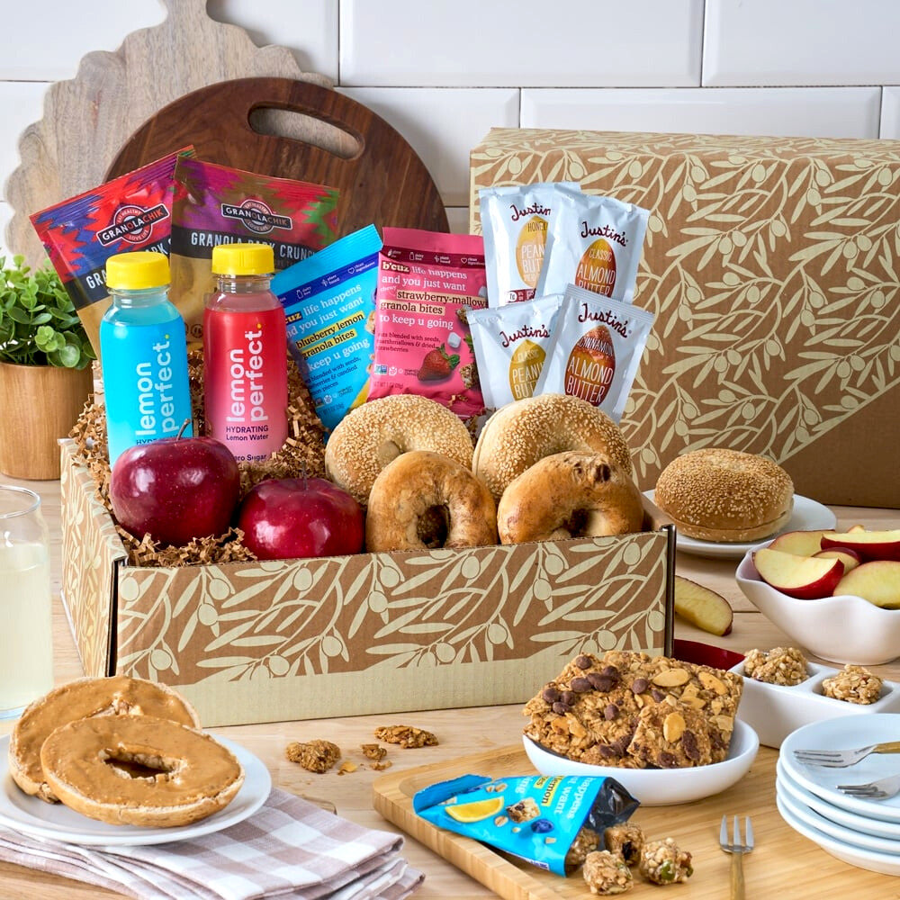Our Snack Healthy Care Package is filled with a thoughtful selection of snacks, including Lemon Perfect, which is a delicious cold-pressed lemon water, Granolachik's granola bark, and B'cuz granola bites, all made with high-quality, natural ingredients. To balance things out, we've also included crispy, chewy bagels. Healthy snacks can make amazing gifts for any occasion!