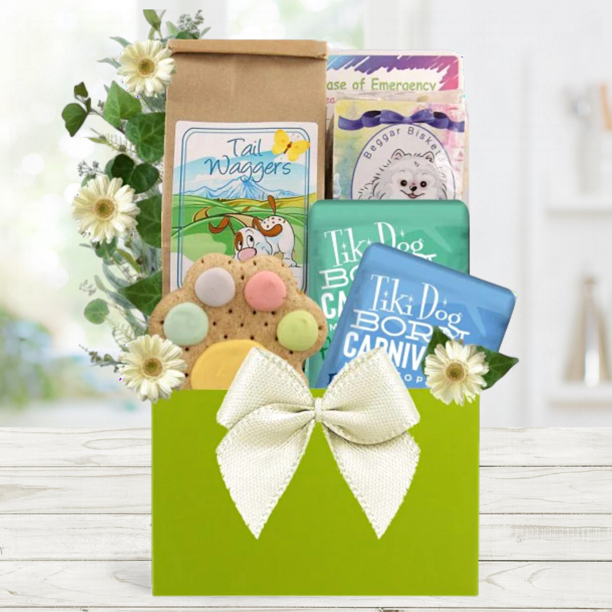 The Tasty Treats Dog Gift Basket includes: