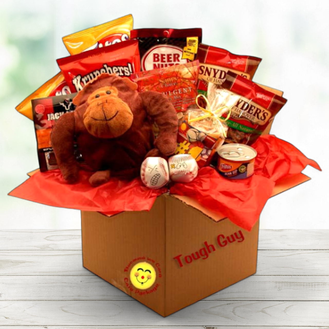 There's no monkeying around when it comes to a mans snacks! The Tough Guy care package includes our adorable plush gorilla and delicious snacks like Jacks Beef Sticks, Beer Nuts, and more. Celebrate in an unforgettable way with this fun filled snack package.