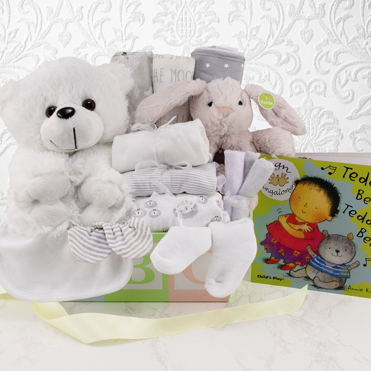 Delight new parents with this all-in-one Welcome Home Baby gift basket that makes life easier and baby even cuter! Thoughtfully curated with high-quality essentials, this gender neutral baby gift basket is a heartfelt way to celebrate their little bundle of joy.